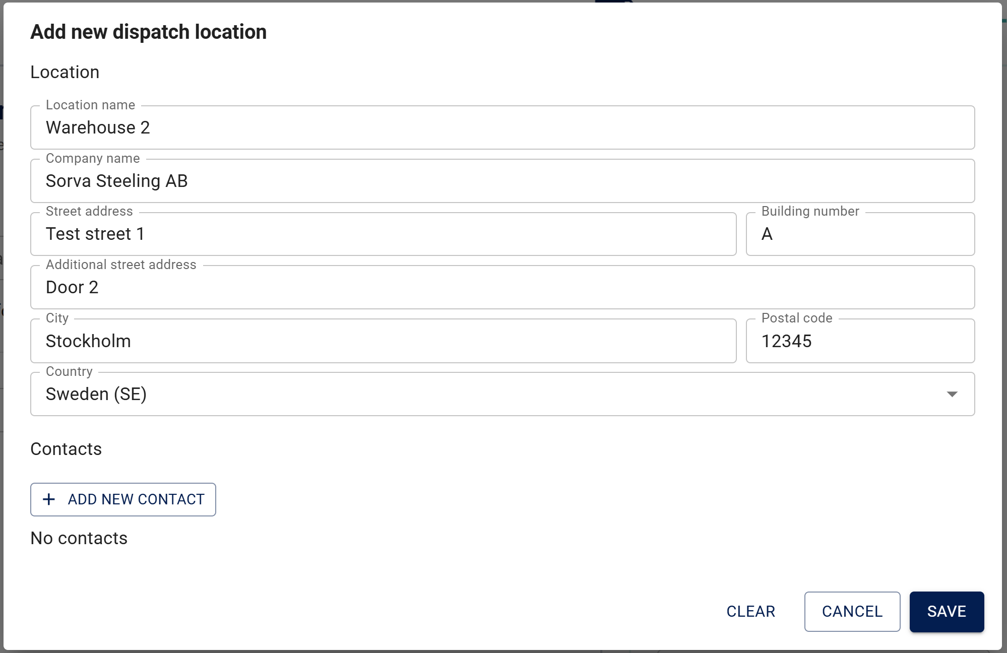 Select Save. You have now successfully saved your dispatch location and dispatch contact, and it can be now accessed from the Dispatch location dropdown menu.