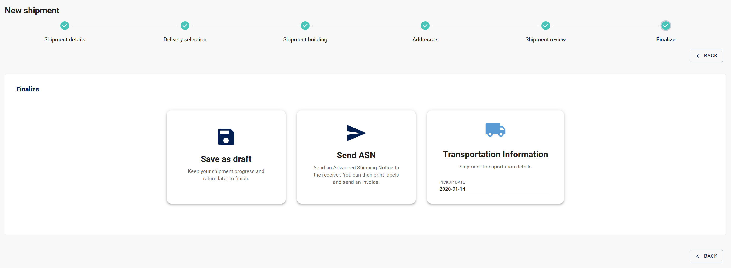 - Easily follow the shipment creation process step by step with a new progress bar