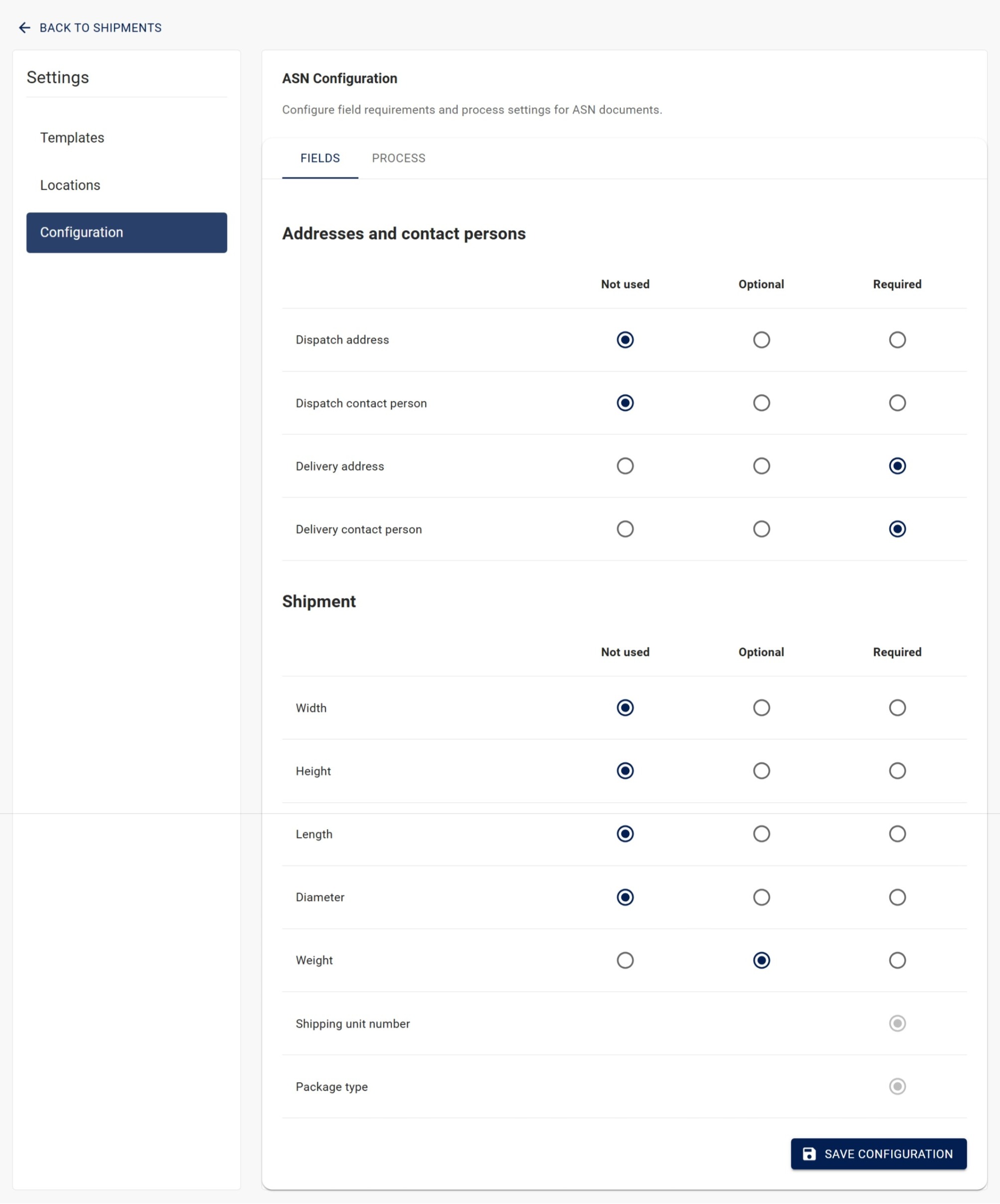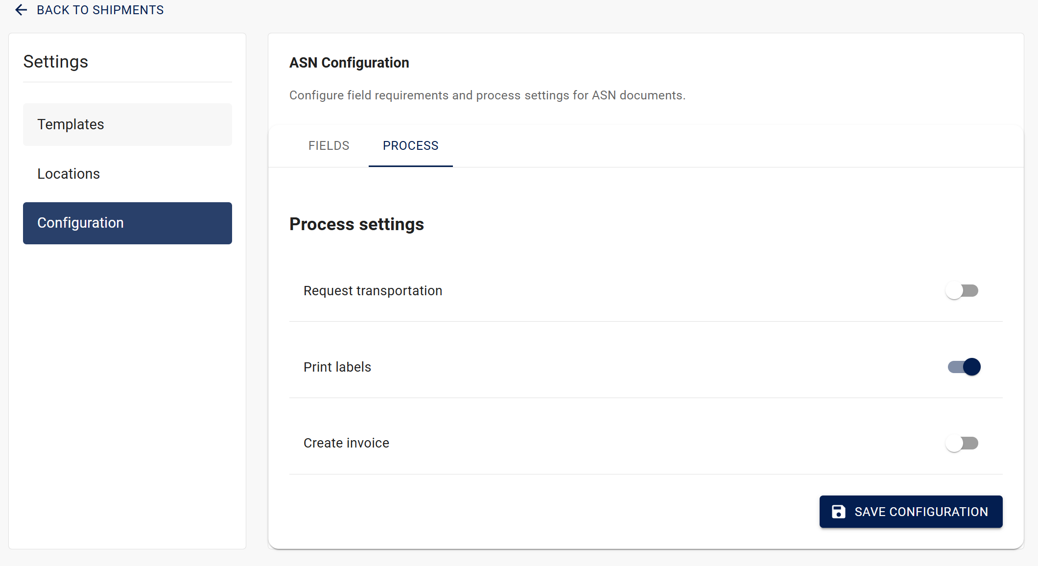 Customize your ASN PROCESS by selecting which phases are included in your ASN creation workflow: