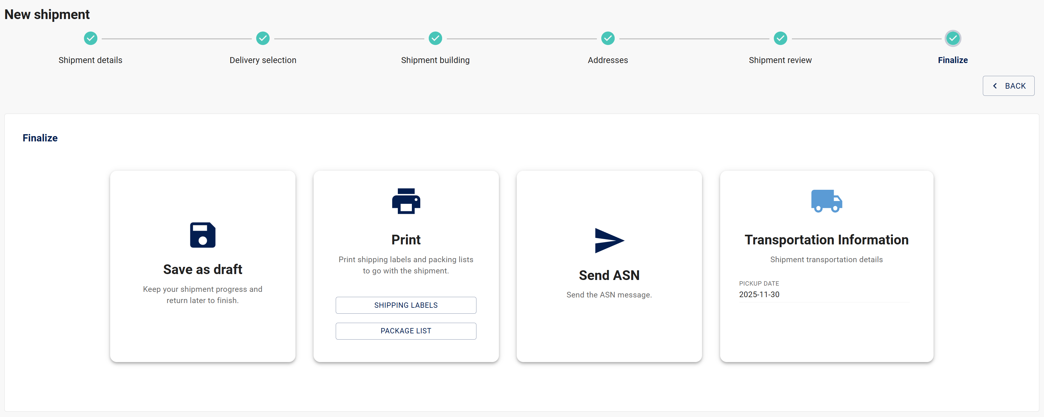 Review your shipment before finalizing it. Use BACK function if something needs to be corrected.