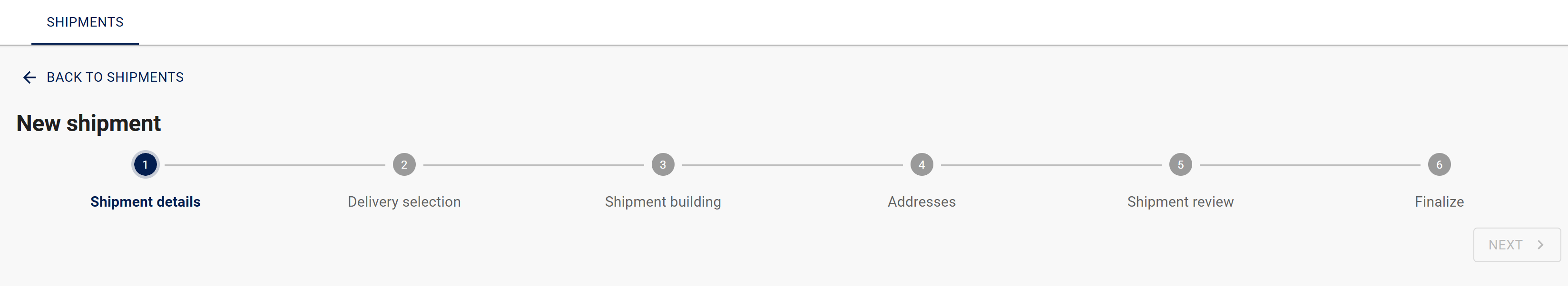 Start the shipment creation by filling the basic information of the shipment. All the fields explained shortly: