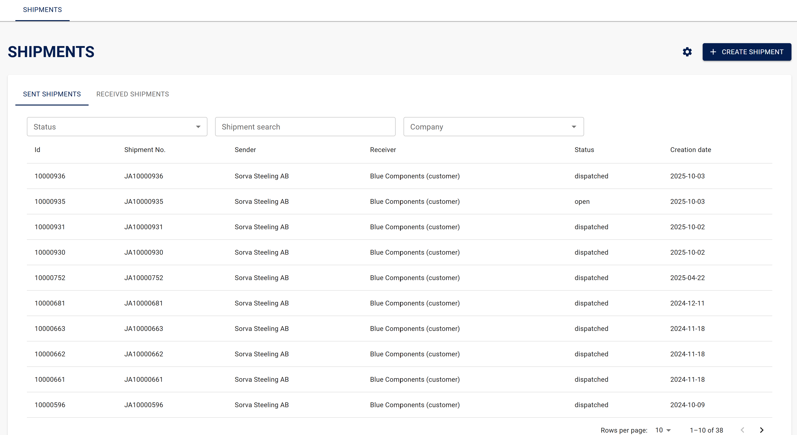 Shipping notice list view displays all sent and received shipments. If you are operating as a supplier, you will most likely find ASNs under the Sent shipments tab. If you are a customer, ASNs are typically listed under the Received shipments tab.