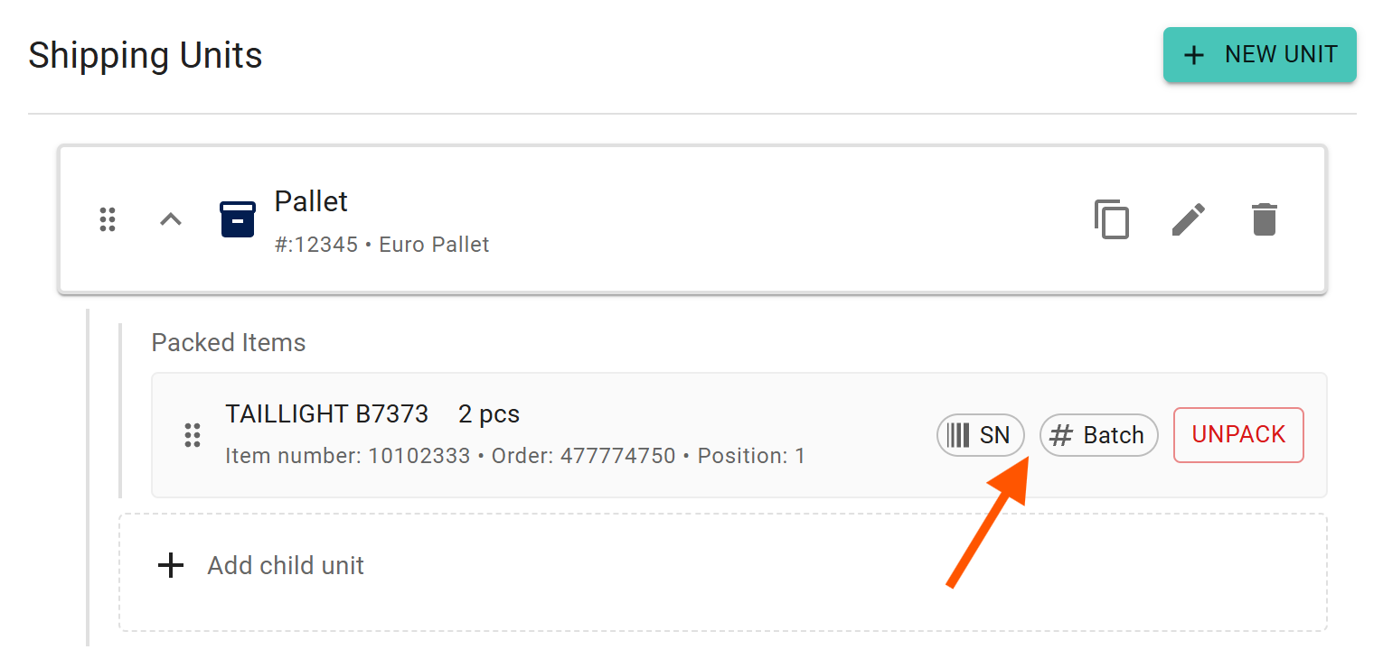 - Shipping unit number: Assign a unique identifier to this shipping unit