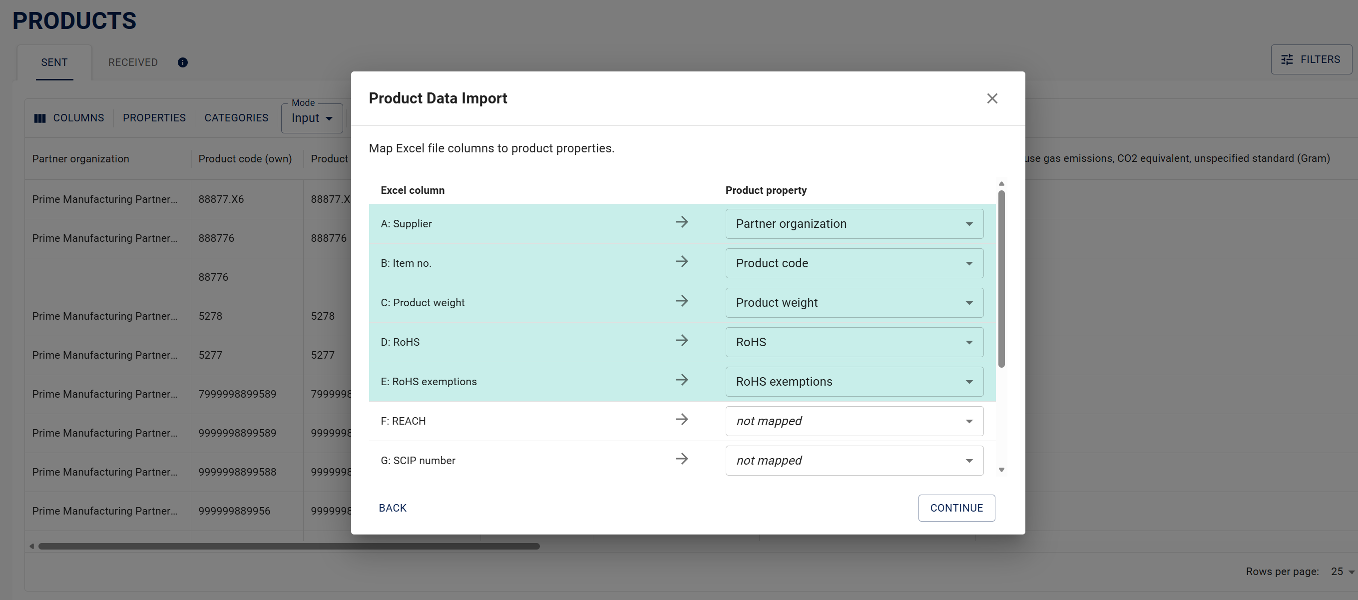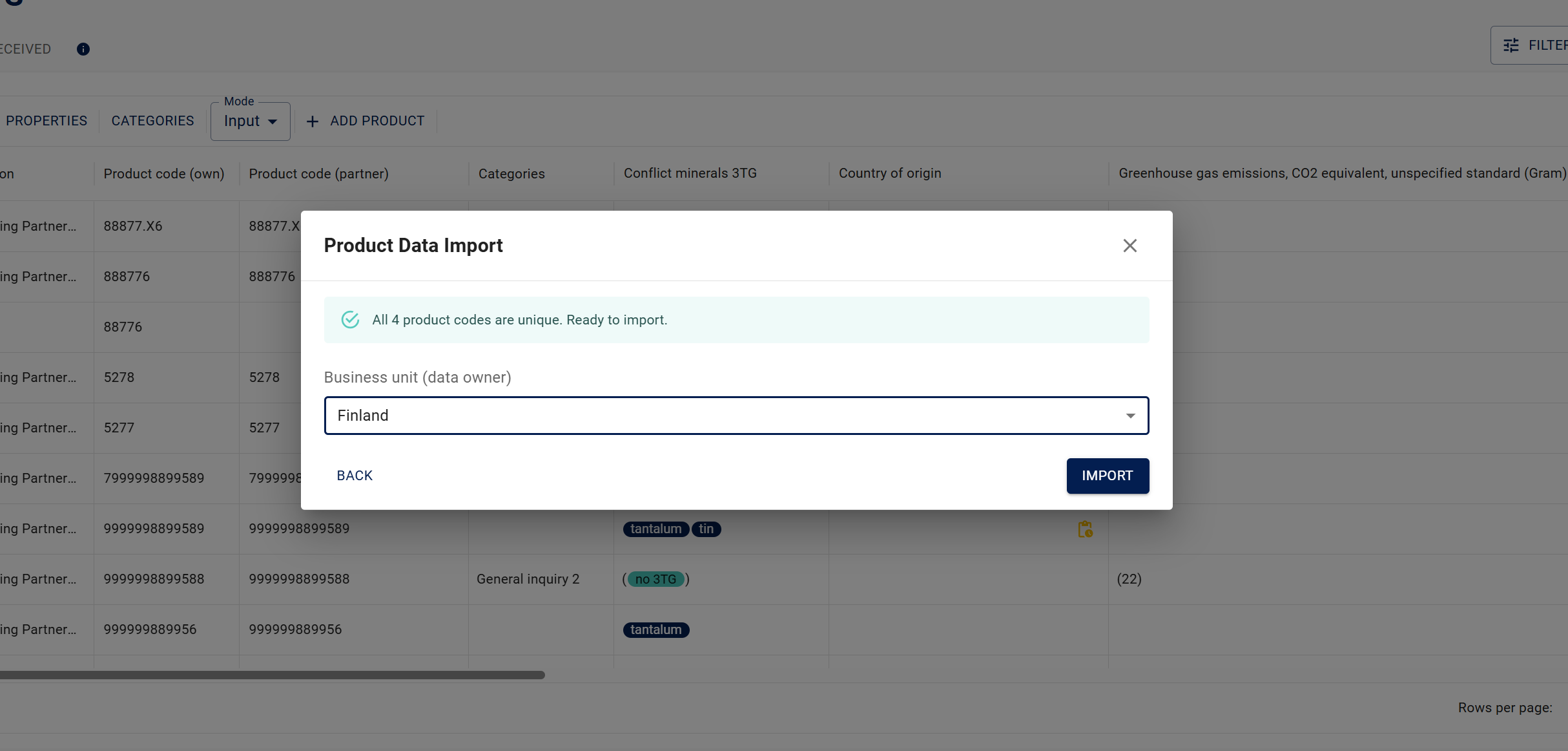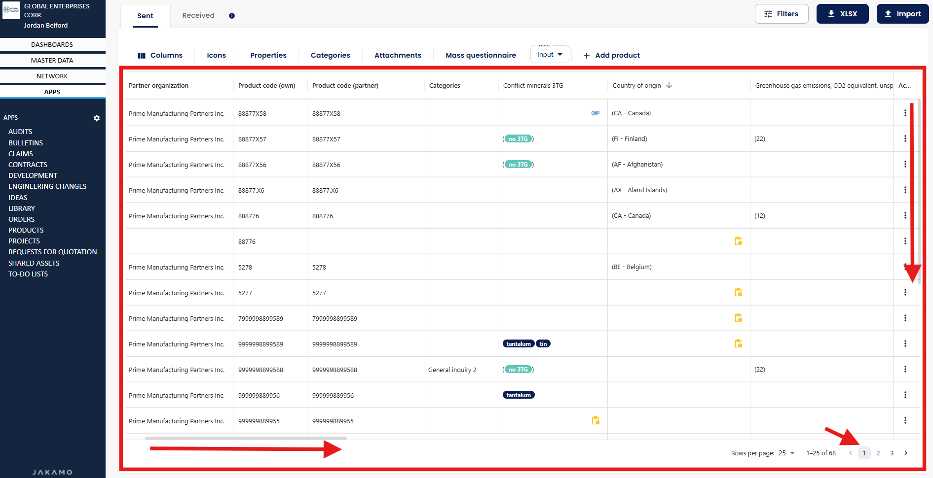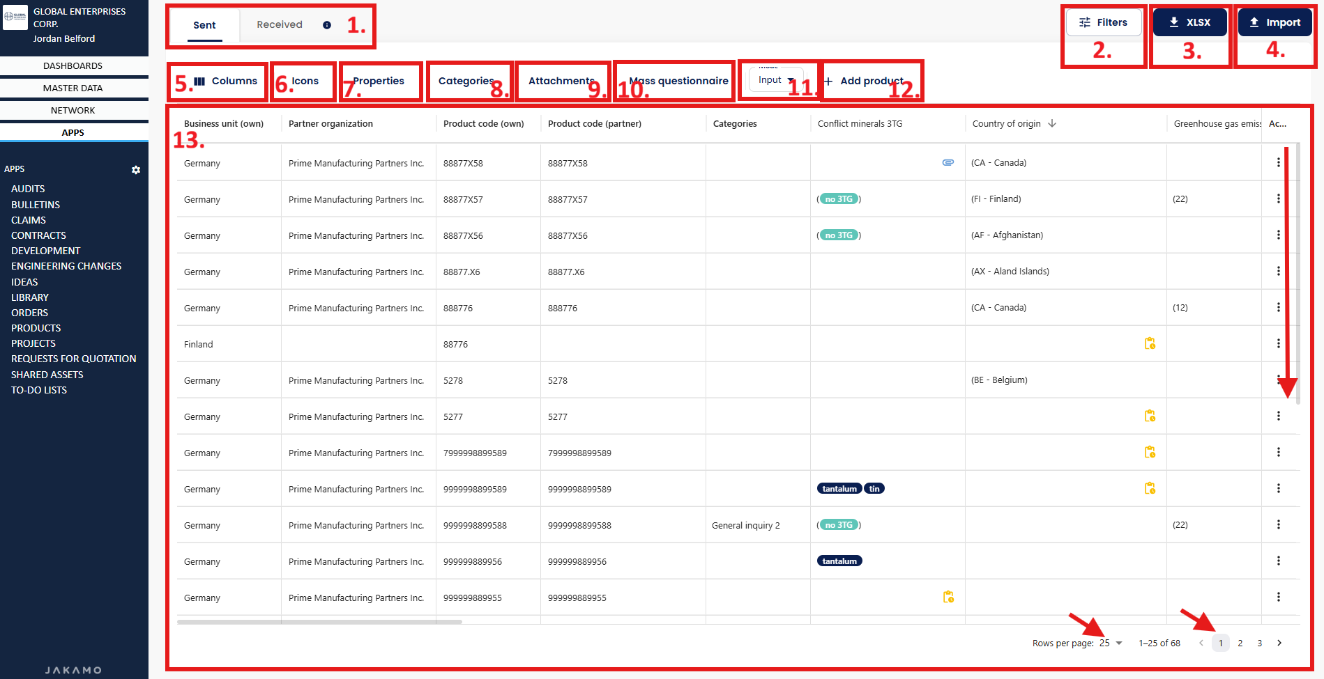The customer can fully define what item-specific information they want to collect. Whether the need is based on CSRD, CSDDD, EUDR, CBAM, RoHS, REACH, DPP, or something else, this is possible with Products. The collected data can also be exported to an external system via an API interface.