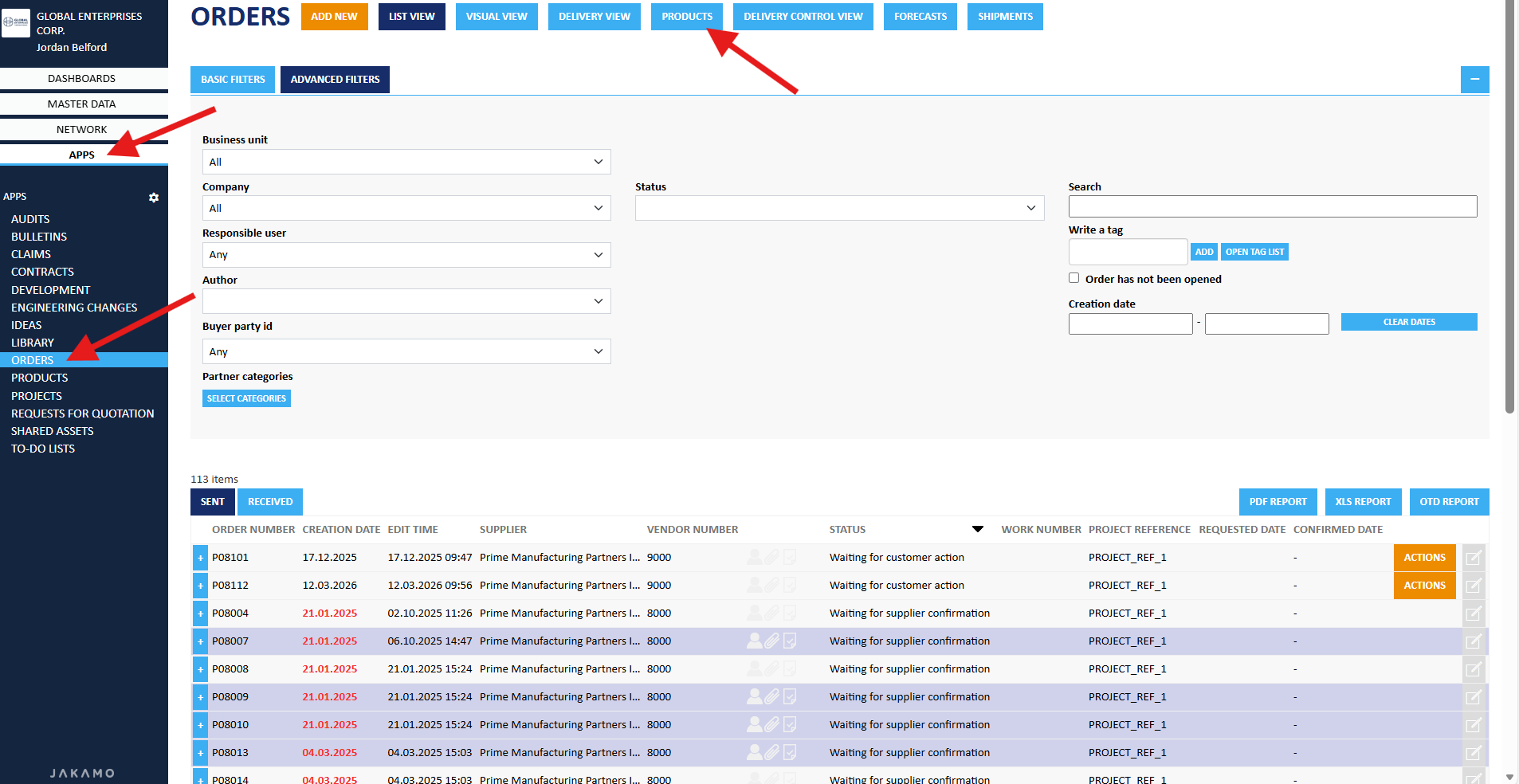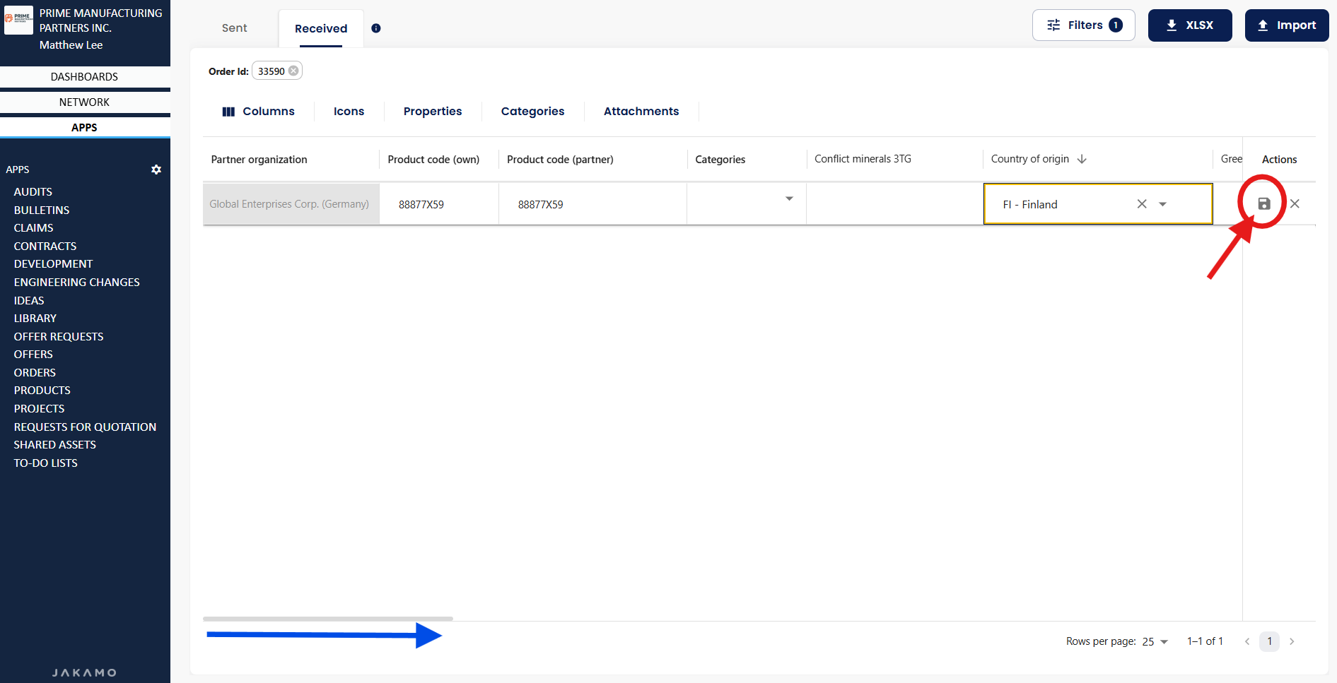 As the customer orders items in purchase orders from their suppliers, the item information is generated into Jakamo's database. This means, in other words, that neither the customer nor the supplier needs to separately import their items into Jakamo / Products, ensuring that all product information is always up-to-date, significantly simplifying the process.