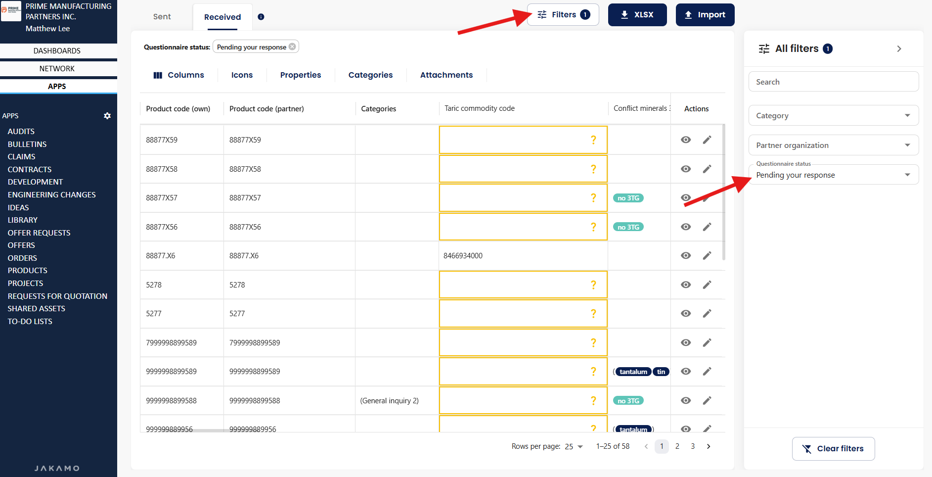 - Mass Questionnaires: Send questionnaires in bulk to specific supplier(s) or item(s).