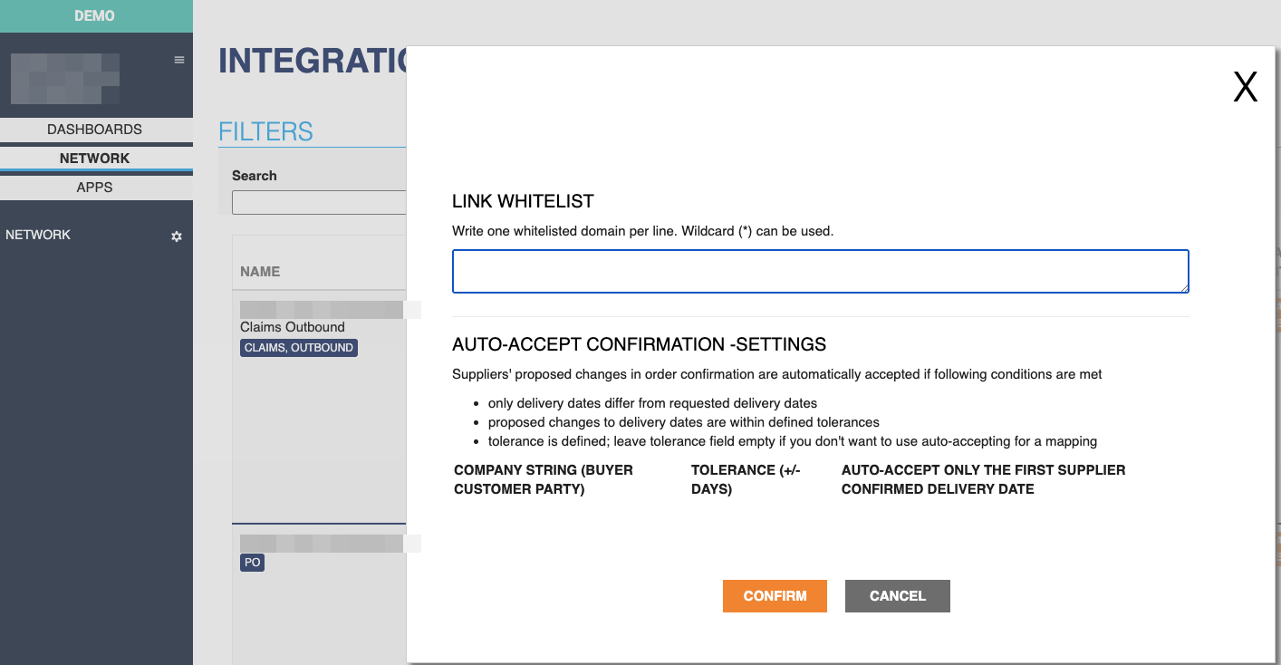 Link Whitelist is a security feature that validates URLs sent in order messages (Order and OrderChange) via the Purchase Order API. This prevents users from being exposed to potentially malicious links by restricting clickable links to approved domains only.